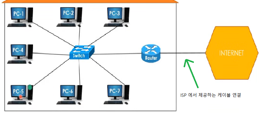 위의 사진에서 처럼 하나의 지역 에서 컴퓨터들이 통신을 하려면 어떻게 해야 할까?