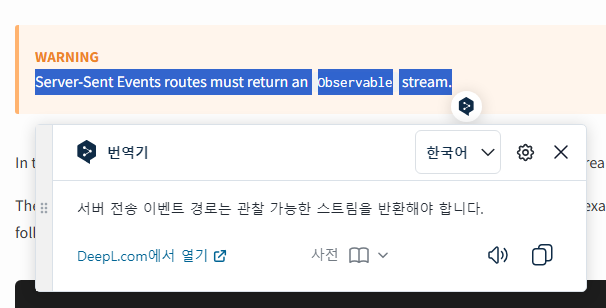 Nest 문서에는 @Sse 데코레이터를 통해서 간단하게 구현이 가능했다