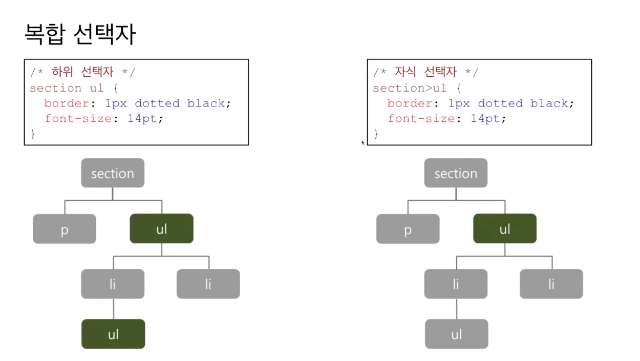 <section>태그 안에 <ul>태그 들만 적용할 수 있는 하위 선택자를 만들수 있다