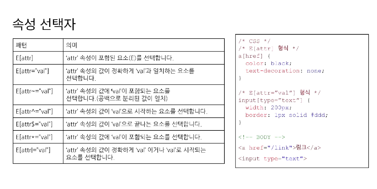 <input> 이라는 태그 안에있는 type="text" 값을 가진 속성 선택자를 뜻한다