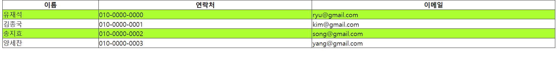 위의 표에서 홀수행 마다 혹은 짝수행 마다 색상을 주고싶을때