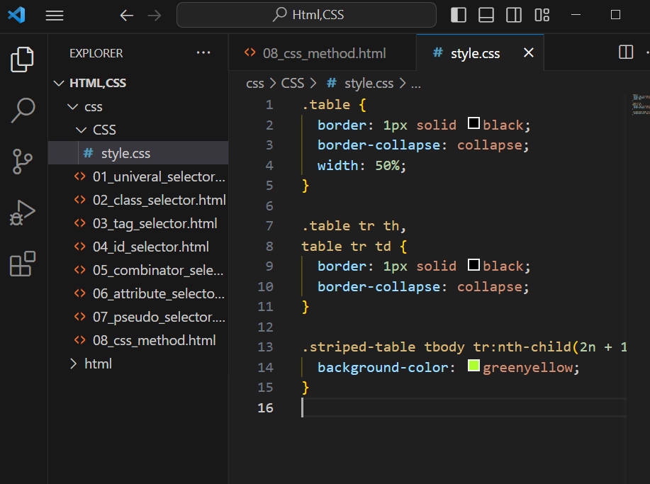 border-collapse: collapes; 속성은 위에 태그는 활성화 되어있고