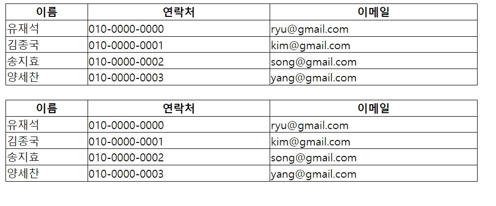 이렇게 똑같은 표를 2개 만들었다