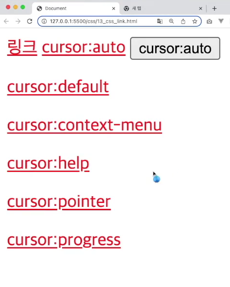 링크와 버튼을 만들어서 sursor: auto 라는 속성값을 적용했다