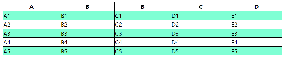 그리고 자식 선택자를 써서 홀수행 마다 백그라운드 색을 입히자