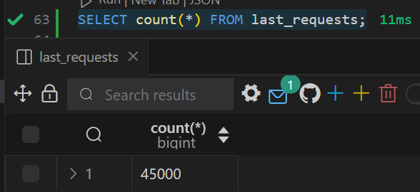| 45000 번의 요청 또는 데이터 업뎃 | 25.8ms( p99 ) | 13.6ms(평균) | 62.291ms |